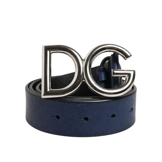 Dolce & Gabbana Blue Leather Classic Metal DG Logo Buckle Belt