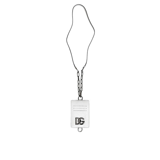 Dolce & Gabbana White Calf Leather Lanyard Logo Card Holder Wallet