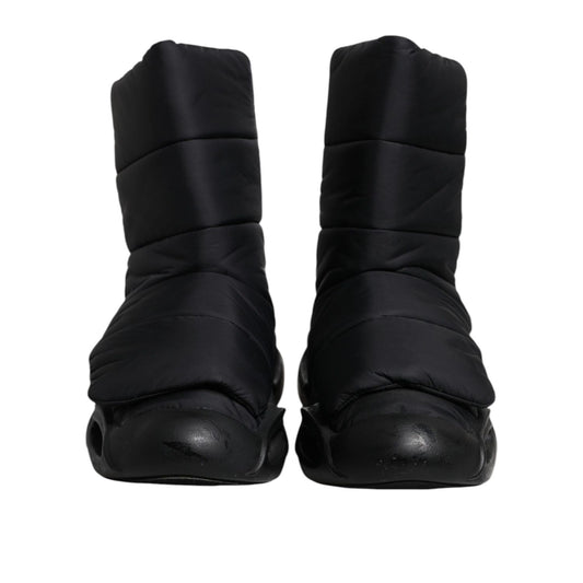 Dolce & Gabbana Black Padded Mid Calf Lace Up Boots Shoes