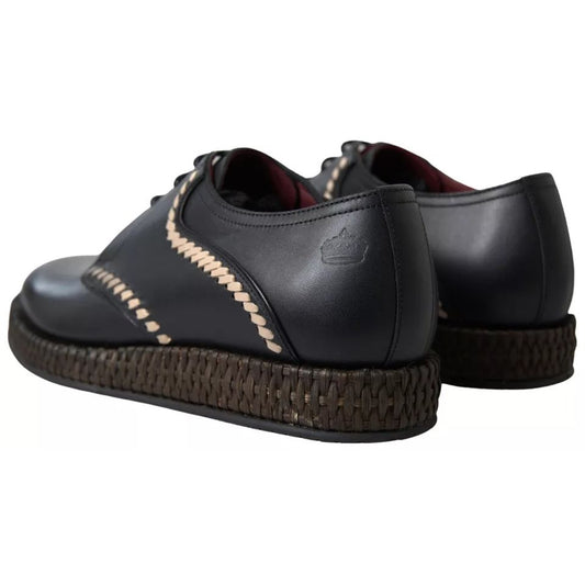 Dolce & Gabbana Black Leather Derby Men Formal Dress Shoes
