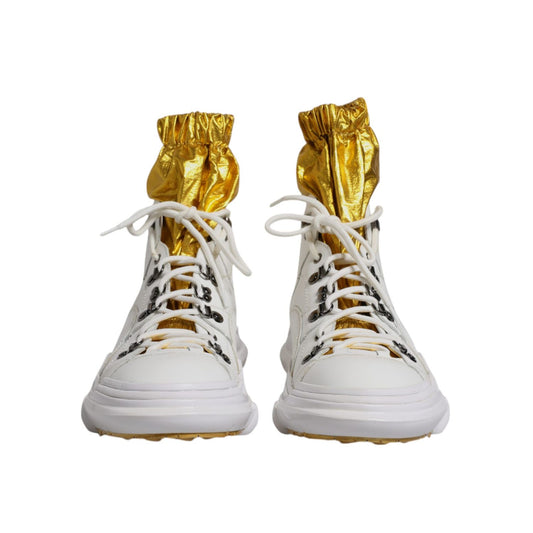 Dolce & Gabbana White Gold DAYMASTER Leather Sneakers Men Shoes