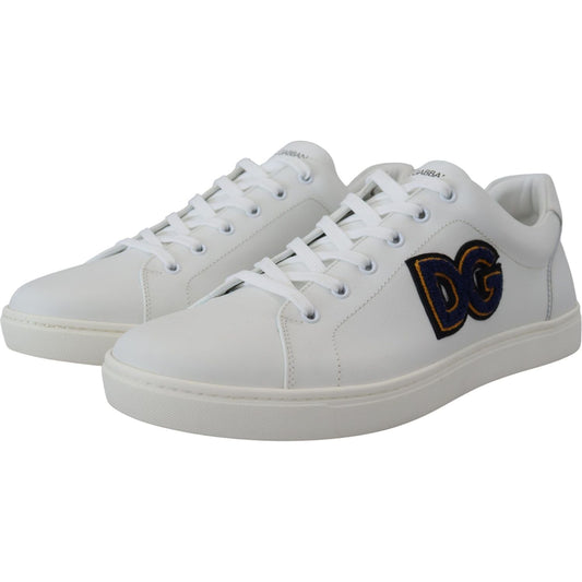 حذاء رياضي منخفض الرقبة من الجلد باللون الأبيض الأنيق من دولتشي آند غابانا