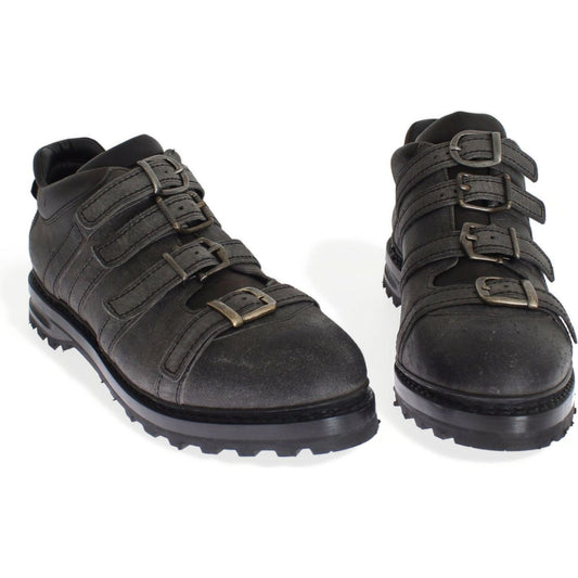 حذاء الكاحل الجلدي الأنيق باللون الرمادي من دولتشي آند غابانا
