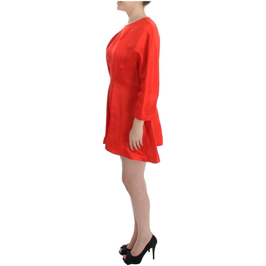 فستان دولتشي آند غابانا متوسط الطول من الحرير باللون الأحمر