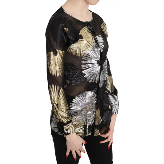 بلوزة شفافة من الحرير من Dsquared² باللون الذهبي والفضي