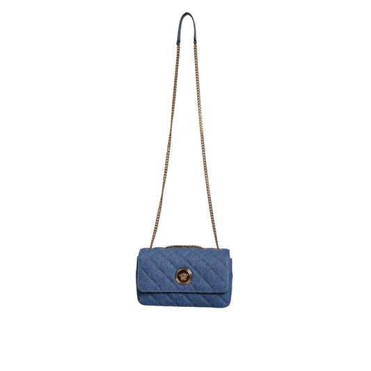 Versace Blue Quilted Denim Leather Crossbody Shoulder Bag