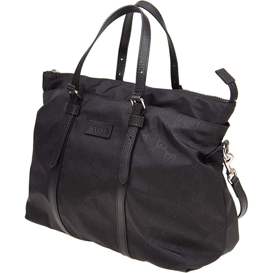 Gucci Black Leather Logo Medium Tote Bag