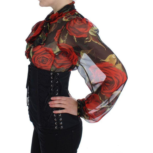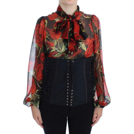 حزام كورسيه أنيق من دولتشي آند غابانا مزين بالزهور باللون الأسود