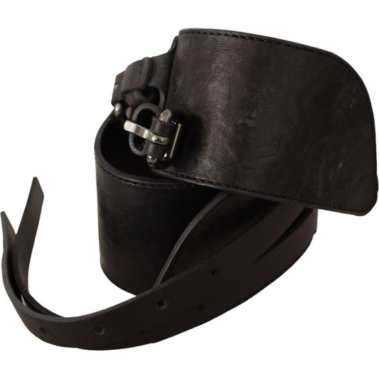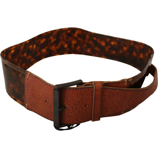 حزام أنيق من الجلد البني من مجموعة Costume National Chic مع مشبك فضي