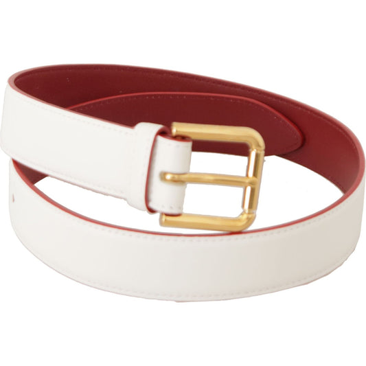 حزام دولتشي آند غابانا الأنيق المصنوع من الجلد الأبيض مع مشبك محفور