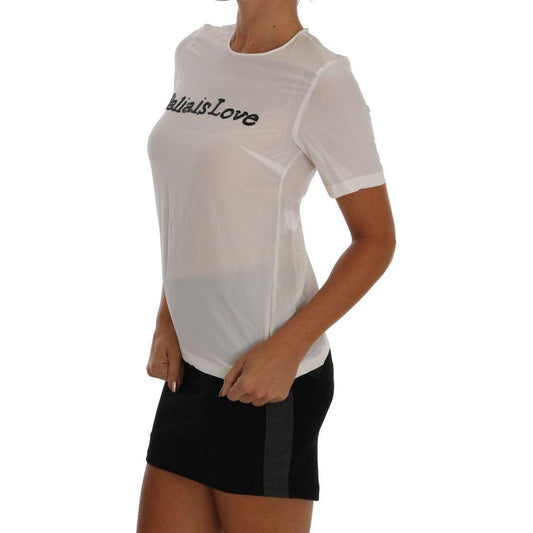 بلوزة بيضاء من الحرير المزين بالترتر من مجموعة "Italia Is Love" من دولتشي آند غابانا