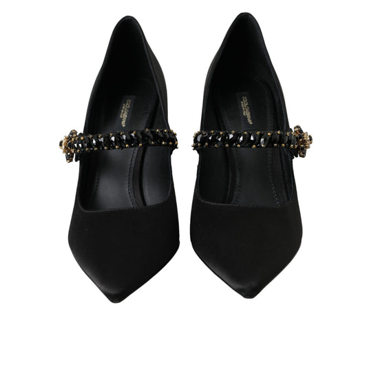 Dolce & Gabbana Black Mary Jane Crystal Heels Pumps Shoes