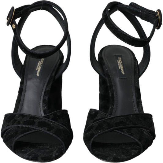 حذاء صندل من جلد الغزال بنقشة جلد النمر باللون الأسود من دولتشي آند غابانا