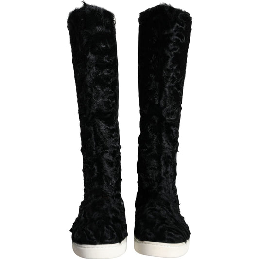حذاء دولتشي آند غابانا أسود بكعب ستيليتو يصل إلى منتصف الساق