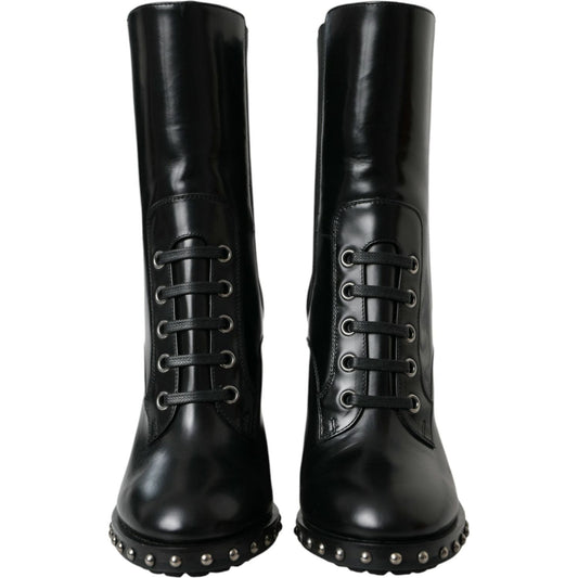 حذاء بوت من الجلد الأسود مرصع بالمسامير من دولتشي آند غاباناVendor:Dolce & GabbanaRegular price £1,019.00 GBPRegular price Sale price £1,019.00 GBPUnit price / perSale
