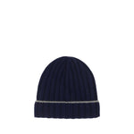 Beanie Hat by Brunello Cucinelli, made of fine cashmere with ribbed knitting. The monochrome design is enriched with contrasting profiles, a refined detail that expresses the discreet elegance of the brand. An essential and sophisticated accessory, ideal for completing winter looks with comfort and style.
