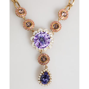 Dolce & Gabbana Gold Brass Crystal Pearl Purple Floral Pendant Jewelry Necklace