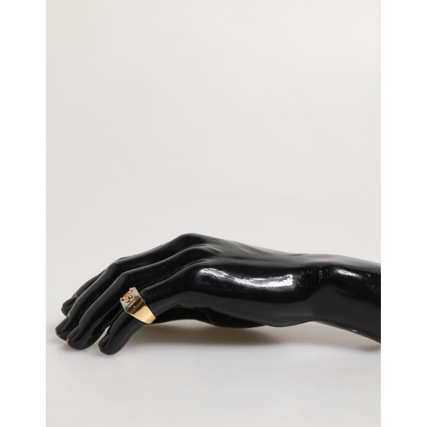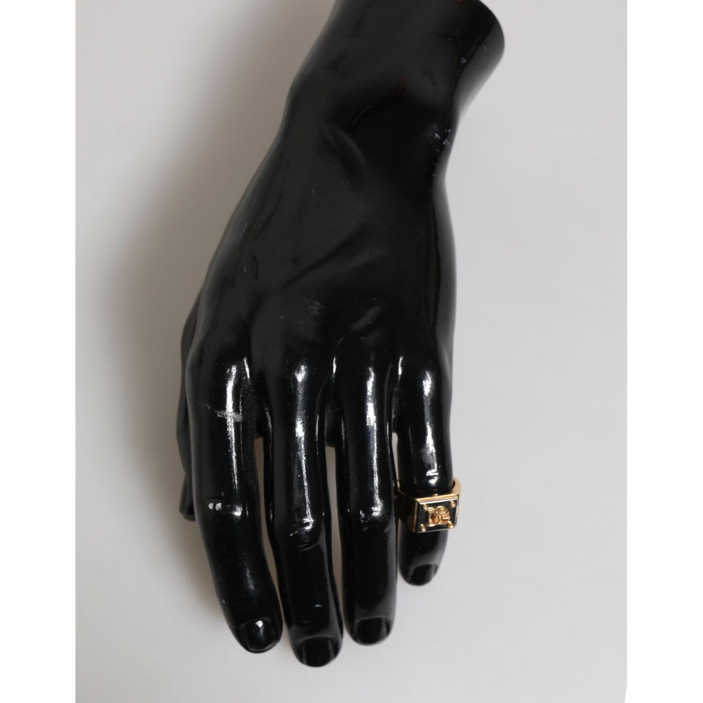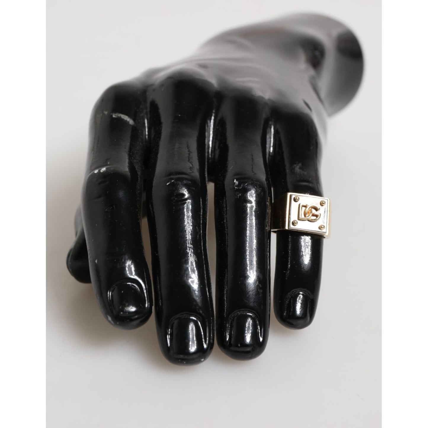 Gorgeous brand new, 100% Authentic Dolce & Gabbana signet ring, featuring a square face with raised DG logo and stud-style corner details. The gold-tone finish combined with a high-polish black backdrop creates a standout contrast that embodies luxury and confidence.