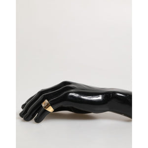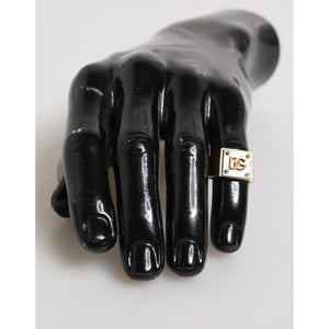 Dolce & Gabbana Gold Tone Brass Signet Square DG Logo Plaque Men Ring