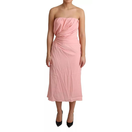 Dolce & Gabbana Pink Silk Stretch Strapless Sheath Midi Dress
