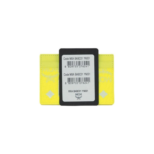 MCM Spectrum Diamond Mini Neon Yellow Visetos Leather Card Case Holder Wallet
