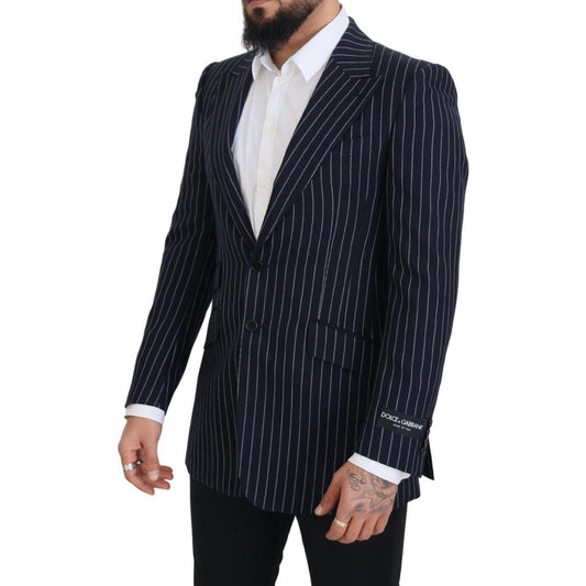 Dolce & Gabbana Dark Blue Stripe Wool Single Breasted Blazer