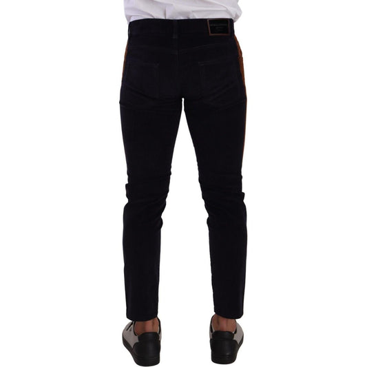 Dolce & Gabbana Blue Cotton Skinny Corduroy Trouser Pants