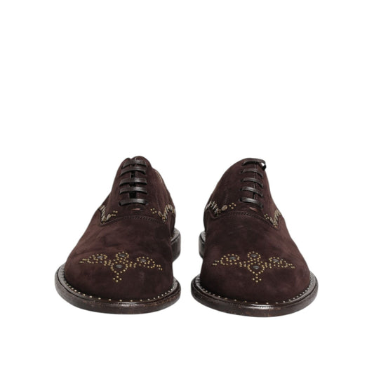 Dolce & Gabbana Brown Velvet Lace Up Oxford Dress Shoes