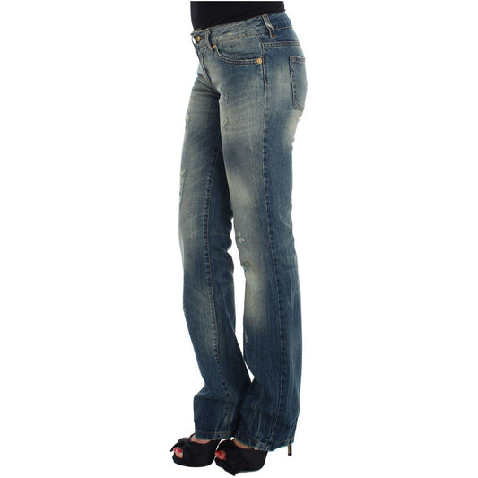 Cavalli Blue Wash Cotton Slim Fit Bootcut Jeans