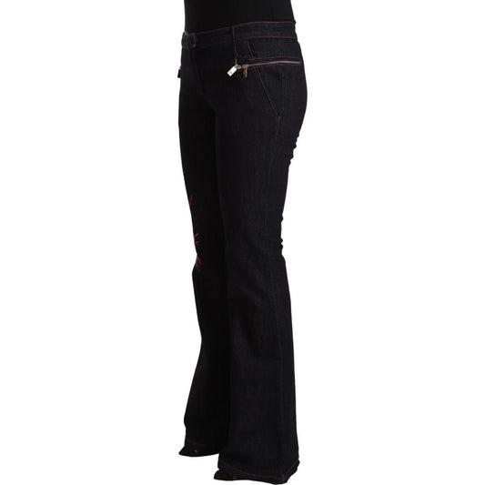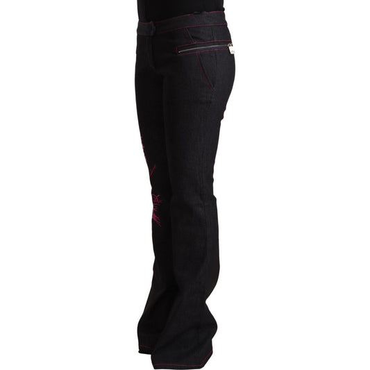 Exte Black Cotton Mid Waist Cotton Flared Jeans