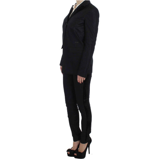 Exte Black Blue Two Piece Suit Skirt & Blazer