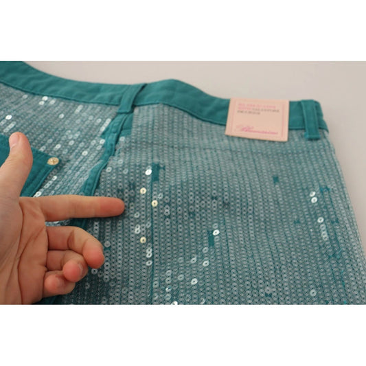 Blumarine Cadet Blue Sequined Low Waist Cropped Trouser Pants