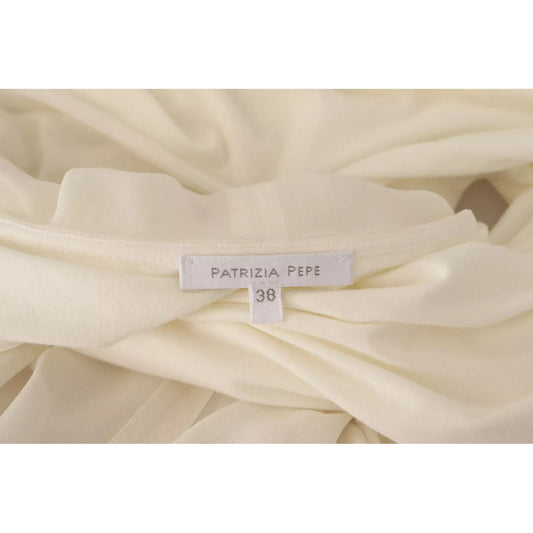 Patrizia Pepe Off White Silk Long Sleeves Deep Vneck Top