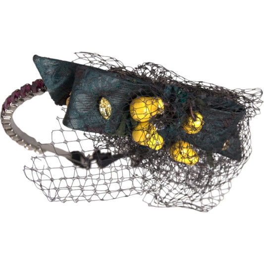 Dolce & Gabbana Black Lemons Sicily Purple Crystal Net Headband Diadem