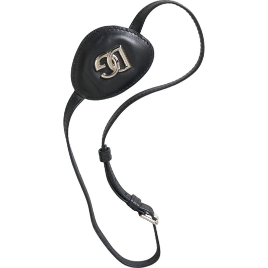 Dolce & Gabbana Black Calfskin Leather Metal DG Logo Eye Patch