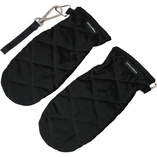 Dolce & Gabbana Black Quilted Nylon Wrist Length Mitten Gloves