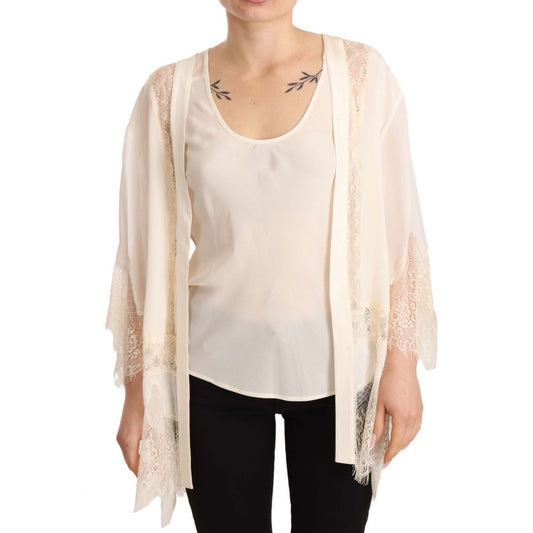 Twinset Off White Tank Lace Trim Cardigan Women Blouse Tops