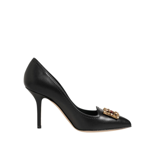 Dolce & Gabbana Black Leather Crystals Heels Pumps Shoes