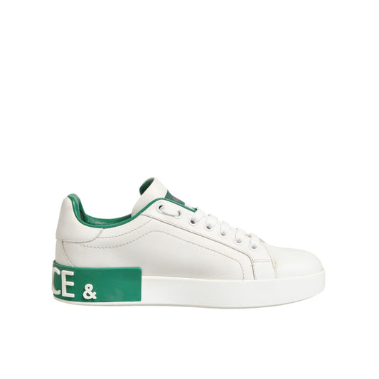 Dolce & Gabbana White Green Leather Low Top Sneakers Shoes