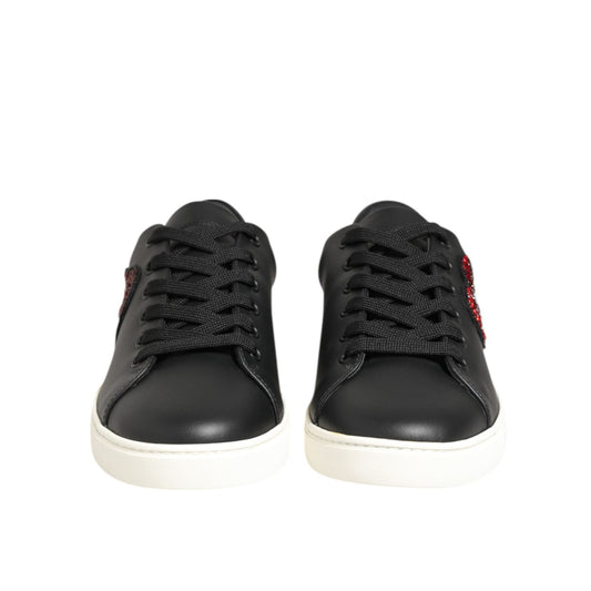 Dolce & Gabbana Black Leather Crystal Heart Low Top Sneakers Shoes