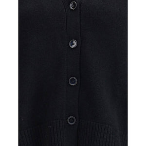 Allude’s wool and cashmere Cardigan is a soft, wrap-around piece perfect for casual elegance. Featuring a front button closure, it has a ribbed hem and cuffs that gently define the silhouette. Dropped shoulders lend a relaxed and contemporary touch, making it ideal for completing casual or more refined looks with comfort and style.