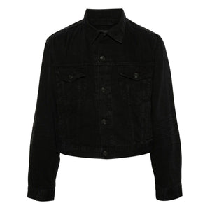 Black, cotton, denim, classic collar, long sleeves, buttoned hems, two flap pockets on the chest, two side welt pockets and front button closure. Denim cotton jacket Size and Fit - This piece fits true to size. We recommend you get your regular size. Model is 1,75m / 5ft 8in wearing size S