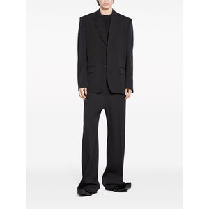 single-breasted wool blazer from BALENCIAGA featuring black, wool, notched lapels, shoulder pads, long sleeves, buttoned cuffs, front button fastening, chest welt pocket, two side flap pockets and straight hem. Wool single-breasted blazer jacket Size and Fit - This piece fits true to size. We recommend you get your regular size. Model is 1,84m / 6ft 1in wearing size M