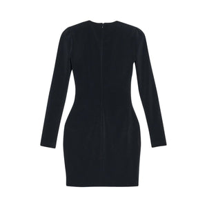 Nero, design elasticizzato, taglio slim, scollo rotondo, chiusura posteriore con zip, maniche lunghe e altezza sopra al ginocchio. Mini dress Size and Fit - This piece fits true to size. We recommend you get your regular size. Model is 1,75m / 5ft 8in wearing size 36 (FR)