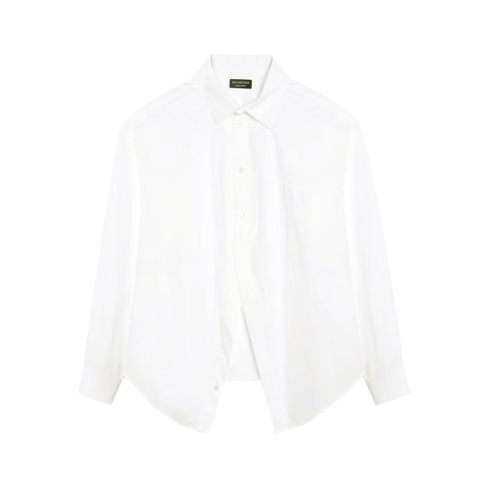 White cotton poplin shirt. Features a pointed collar with tone-on-tone embroidered logos, button fastening, long V-neckline at the bottom of the front with waist detail, patch pocket on the chest, buttoned cuffs and a straight back hem. Cotton shirt Size and Fit - This piece fits true to size. We recommend you get your regular size. Model is 1,75m / 5ft 8in wearing size 36 (FR)