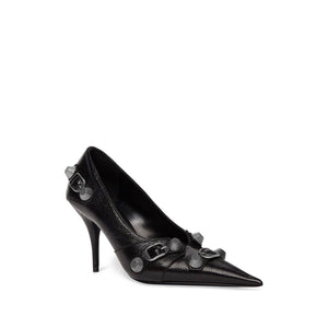 Nero, pelle di agnello, dettaglio con fibbia decorativa, design a punta, design senza aperture, soletta con logo e tacco alto. Le Cagole leather pumps Size and Fit - Heel 9 cm