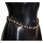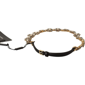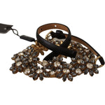 Dolce & Gabbana Black Daisy Crystal Dauphine Texture Belt