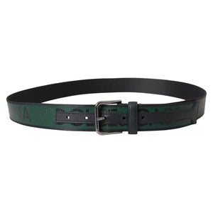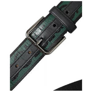 Dolce & Gabbana Black Green Logo Silver Metal Buckle Belt