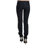 Just Cavalli Blue Low Waist Skinny Trousers Braided String Pants