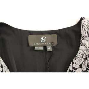 Sachin & Babi Black Silk Floral Pattern Shift Coctail Dress
